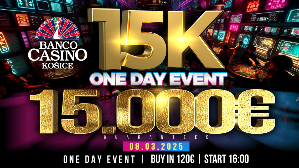 Most szombaton kerül megrendezésre a 15K One Day Event, amely 120 eurós nevezési díj mellett 15.000 eurós nyereményalapot garantál. Ez a rendszeres egynapos verseny 16:00 órakor kezdődik, amikor is megkezdődnek a küzdelmek a bajnoki címért és a trófeáért. A 100.000 zsetonból álló stack és a 30 perces szintek nagyszerű pókerakciókat ígérnek.