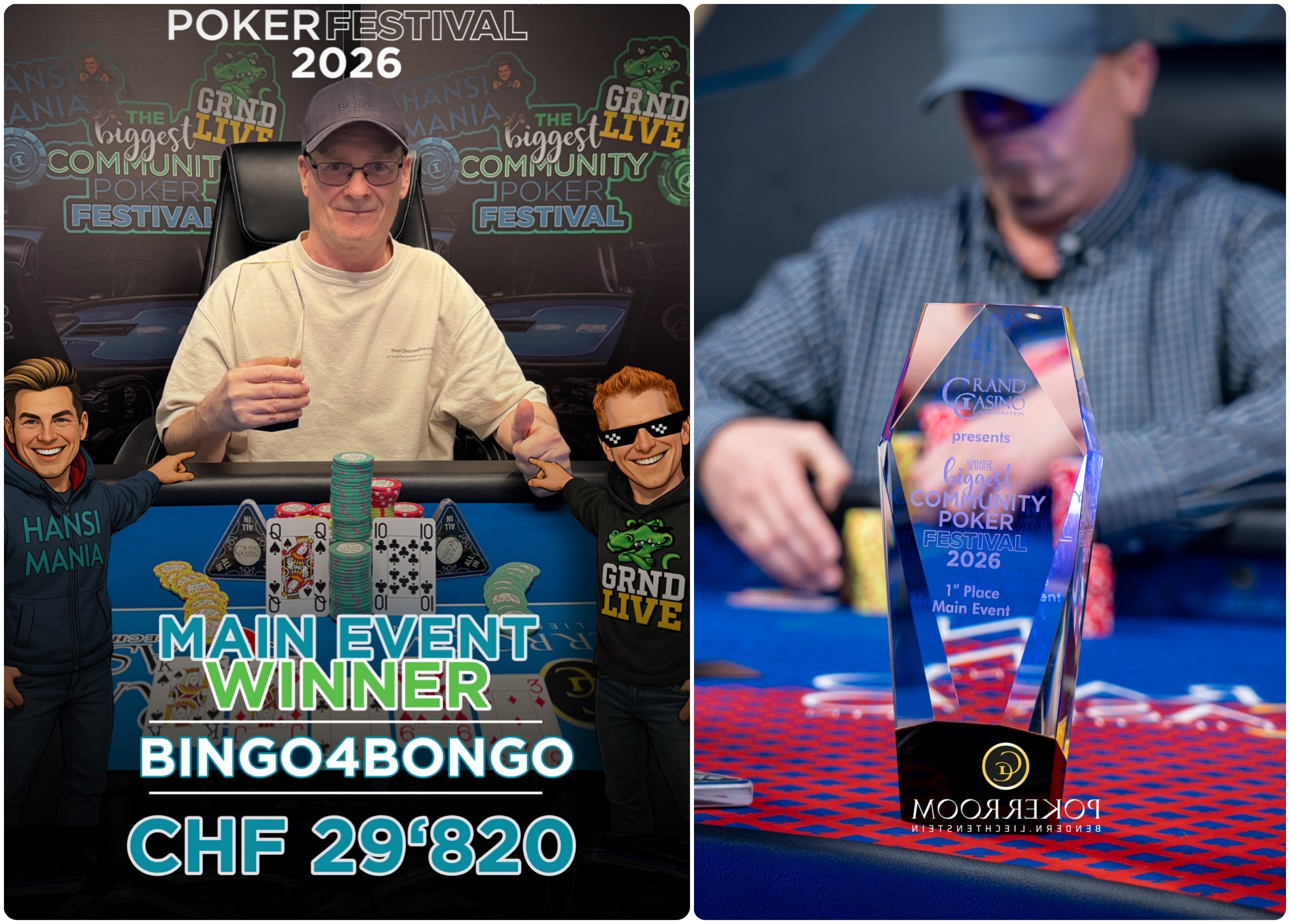 A HansiMania és a GRND LIVE márkák közötti premier közösségi együttműködés Main Eventje kiváló számokat produkált - a 250CHF buy-inú verseny 836 nevezést regisztrált, ebből 624 egyedi bejegyzés és 212 re-entry. A prizepool így 183.920CHF-re nőtt, és 101 játékos jutott a döntő napra, mindannyian már zsebükben volt a minimum nyeremény, 495CHF.