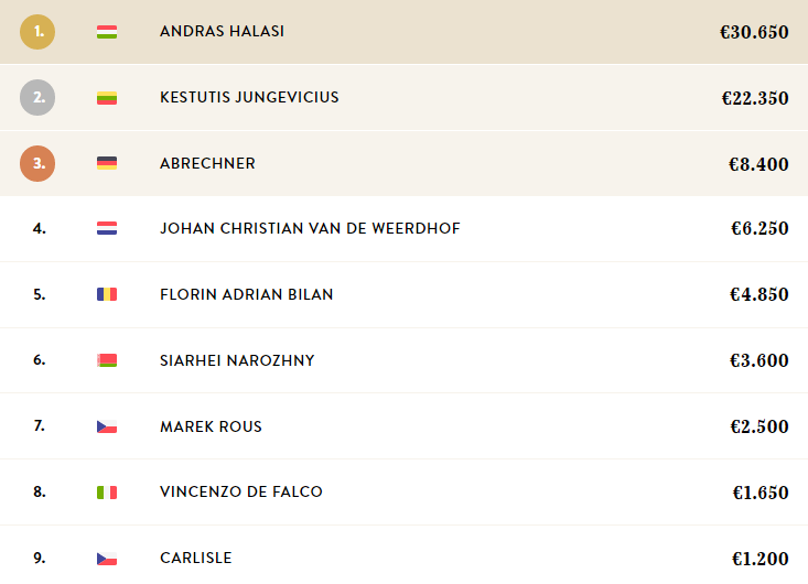 A nevezők közt több magyar pókeres is volt, köztük Halasi András is, aki egészen a torna heads-upjáig jutott, majd miután legyőzte utolsó ellenfelét, a litván Kestutis Jungeviciust elvihette a bajnoknak járó 20.600€-s fődíjat és hozzá egy 10.350€ értékű WSOPE Main Event belépőt is.