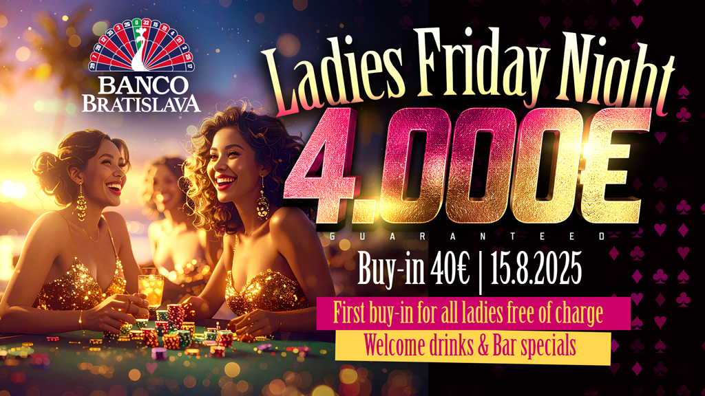 Az alapos felkészülés elengedhetetlen, ezért ne hagyjátok ki a szombati PPC Warm-Up Mystery Bountyt sem, amely augusztus 16-án 20.000€-s garanciát kínál 100€-s nevezési díjért. Ha azonban nem bírjátok ki szombatig, augusztus 15-én, pénteken a Banco Bratislavában egy különleges nyári Ladies Night vár rátok, 4.000€-s garanciával és 40€-s buy-innel. A hölgyeknek az első buy-in ingyenes, és minden vendég számára nyári welcome drinkkel és különleges bár kínálattal készülnek.
