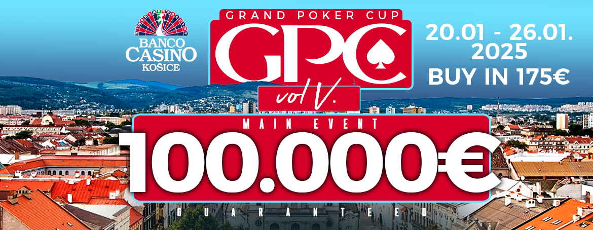 Már az újév után készüljetek a Grand Poker Cup ötödik kiadására. A 100.000€ GTD torna 2025. január 20. és január 26. között tér vissza Kassára, és egy nagyszerű pókeres akciókkal teli eseményt hoz.