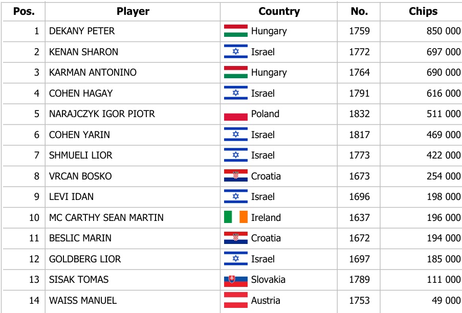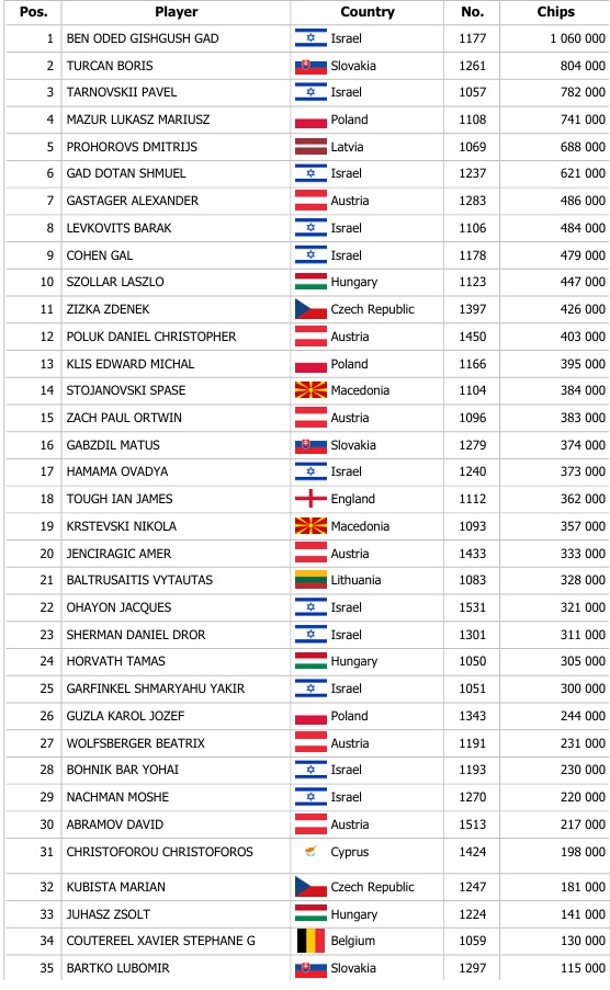A szombati program pontosan délben kezdődött, amikor a pókerasztaloknál már több mint száz játékos ült. A tegnapi három flight összesen 794 regisztrációt hozott, a Banco Bratislava pedig 7 800€-t osztott ki Chipleader Bónuszként. A mai 2. napra pontosan 80 játékos jutott tovább, akik a döntős helyekért versenyeznek.