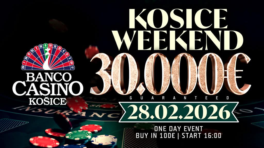Február végén a Banco Casino Košice ismét a legjobbat nyújtja. Ma megrendezésre kerül a történelmi Košice Weekend, amely több mint száz bajnok nevét ismeri. A verseny 16:00 órakor kezdődik, és a 100€ buy-inért cserébe 30.000€-t garantál. Ez a tornalátványosság vonzza a játékosokat a környékről, akik küzdeni akarnak a címért. A tornán külföldi játékosok is részt vesznek, akik szívesen térnek vissza a Banco Casino Košice-be.