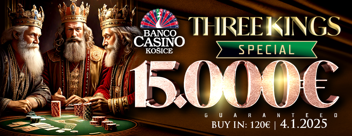 Ďalším turnajom v poradí bude Three Kings Special, ktorý sa uskutoční túto sobotu 4.1.2025 už o 16:00. V turnaji s buy-inom 120€ a garanciou 15.000€ dostanete na začiatku hry až 100.000 chipov. Víťaza spoznáme v skorých ranných hodinách, ktorý si odnesie niekoľko tisíc eur.