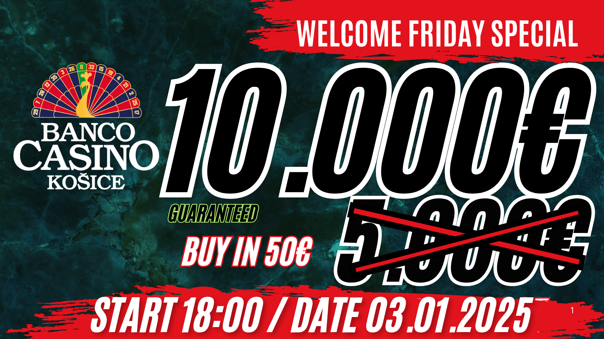 Dnes bude na programe Welcome Friday Special, ktorého garanciu navýšil Banco z pôvodných 5.000€ na príjemných 10.000€. To všetko za nezmenený buy-in len 50€. Turnaj štartuje už o 18:00.