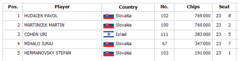 Vďaka dvom doterajším flightom sa do finále prebojovalo 11 hráčov, na ktorých čakajú finančné odmeny. To najdôležitejšie však príde už počas víkendu, kedy sa do kasína nahrnú aj hráči iných národností. Očakáva sa účasť maďarských a poľských hráčov, ktorí pomôžu 100.000€ garanciu prekonať.