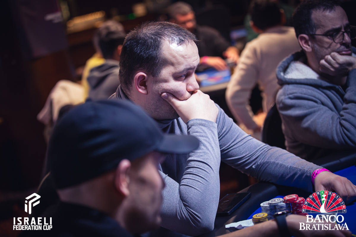 Včera sa od šestnástej hodiny stretlo za pokrovými stolmi Banco Bratislava 227 hráčov , ktorí mali za úlohu dostať sa do top 16 hráčov a postúpiť tak do finálového dňa, v ktorom sa budú rozdávať tie najväčšie výhry. Po niekoľkých hodinách hry sme spoznali finálovú zostavu, ktorá sa dnes stretne v boji o 64.150€. Finálovú zostavu vedie ako chipleader Mladen Stojanovic z Chorvátska. V hre je stále aj domáci Milan Sabol a aj dvaja českí reprezentanti Jakub Vašíček a Alexandr Reško. Kto sa stane prvým šampiónom Israeli Federation Cupu?
