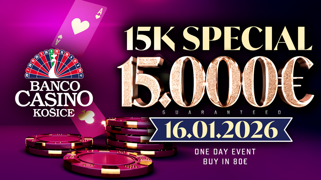 Najväčším jednodňovým turnajom januára 2026 bude 15K Special, ktorý 16. januára prinesie hráčom až 15.000€ garanciu za vstupných 80€. Turnaj odštartuje o 18:00 hodine a čakať vás budú 25 minútové levely. Krásny stacky 100.000 chipov a skvelá štruktúra bude zárukou kvalitného pokru.