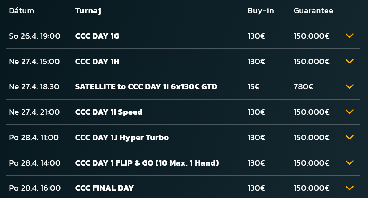Okrem tohto flightu sú pre vás všetkých pripravené už len 4 šance na postup do finále. Nedeľa prinesie posledný regulárny flight s polhodinovými levelmi, spolu so zrýchleným Speed flightom, no a všetko uzavrie pondelkové Hyper Turbo spolu s Flip & Go kvalifikáciou.