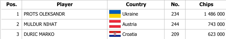 Včerajší hrací deň priniesol flight s označením 1G, ktorého sa hráči zúčastnili 57 krát. Vďaka tomu si miestenku do finále odniesli traja hráči. Ďalší šiesti si odniesli aj finančné odmeny 800€ a 900€. Dnes a zajtra nás teda čakajú turbo flighty, v ktorých sa rozhodne o ďalších postupujúcich.