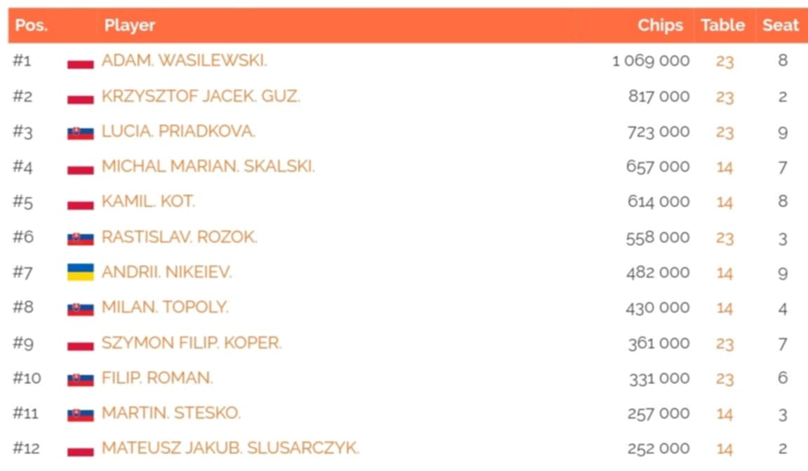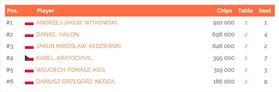 Včerajší hrací deň mal na programe tri flighty Main Eventu Player On Tour, kde najskôr hráči vytvorili 63 entries. Z prvého flightu tak postúpilo šesť hráčov.