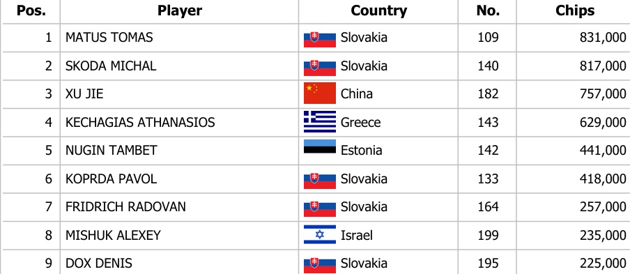 Po vydarenom úvodnom hracom dni 1A sa včera odohral flight 1B, v ktorom hráči počas registračnej fázy zaznamenali 92 vstupov. Z postupu sa tak tešilo 9 hráčov, ktorí môžu zabojovať aj o kvalifikačné bonusy. Chipleaderom druhého flightu je domáci Tomáš Matúš.