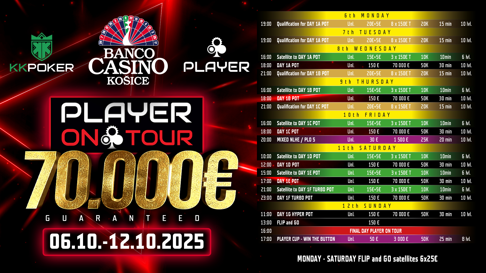 Aj keď je september už pomaly za nami, ani ďalší mesiac nebude skúpy na skvelú akciu. Októbrovej ponuke bude kraľovať séria Player on Tour, ktorá tentokrát ponúkne 70.000€ garanciu. Buy-in do tohto turnaja bude 150€ a do finálového dňa bude viesť celkovo 7 úvodných flightov.